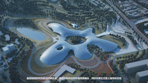 “水善利万物而不争。”水滴犹如滋养万物的起源,水有避高趋下的大原则,而没有固定的形状,无论在何种情况下,它都能因环境的变化而变化以适应环境,与自然是最和谐的状态。一滴水就这样注入场地,荡漾,流动,伸展,山水有灵,一曲植物的生命之歌在博物馆丰富的空间中奏响,绽放。在景观视线上,自然的大山大水均在场地上融会贯通。在地形上,建筑与地形等高线完美融合,让自然地面漫入建筑,室内外融为一体,达到万物和谐万物融的状态,展现了大国崛起中大气而柔和的国家形象。大型博物馆内既有展厅,又有温室,不同功能空间既有相对独立的要求又需要联系。本案用一个语汇将复杂的功能融合在一起,形成统一的形象。木结构屋顶的图案仿佛自由延伸的叶脉或花瓣脉络。其中从不透明到透明的渐变,既体现了内部使用功能的要求,也让建筑仿佛一个自然灵动的生命体。风与水的流动自然形成两条轴线。发展轴从主入口指向未来扩展部分,进而向室外展场和黑龙潭公园延伸,景观轴从北向南由树木园指向扶荔宫,自然形成植物园、树木园和黑龙潭公园三园一体的整体格局。三园为国博的建设提供良好的自然环境和优越的生态条件,国博的建立为片区增添更多种质资源以及科普、展示等新功能,相互之间融合互补,形成大规模馆群落区。空间上,提取植物园,树木园和黑龙潭公园的部分现状步行环路,与国博环线有机结合,让游客可以无障碍畅游国博片区,多重体验一次享受。用地与城市空间通过流畅的交通规划无缝衔接,导入鲜活生动的城市公共生活。园区内机动车交通流线形成环路,使人流、货运和消防车能顺畅到达每个建筑出入口和消防扑救区。停车场内外分开,位置便捷。一条植物主题花车巡游道将世界花园主题的室外展场串联成一个有故事的空间,在花车巡游之外,也可休闲、散步、慢跑、运动、宿营、品茗。博物馆展厅外的公共大厅成为城市公共空间的延伸。来自大地景观的复合通风遮阳屋面构成生态文明新地标;通过调研植物栖息地的气象数据,温室采用供暖系统和小型空气源热泵系统的策略,避免集中空调系统,在展现植物美好的生命循环之余,也成为节能生态实践的示范点。崭新的国家植物博物馆,在建成后,不仅是知识的宝库,更将丰富每个日与夜的城市生活。山水神秀,智慧自然,敬请期待国家植物博物馆。