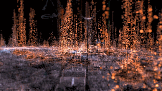 42 台大型投影仪将这个庞大的“数据宇宙”,投影在当代著名建筑师 Frank Gehry 设计的音乐厅上。